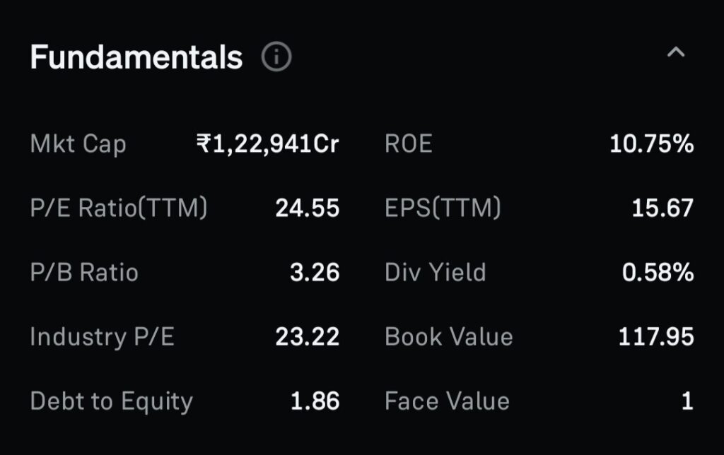 Price/Book Ratio मतलब कंपनी की असली संपत्ति से 3.26 गुना पर share बिक रहे हैं । इसमें 1 से कम होने पर share सस्ता होता है जबकि 1 से ज्यादा होने पर share overvalued माना जाता है।